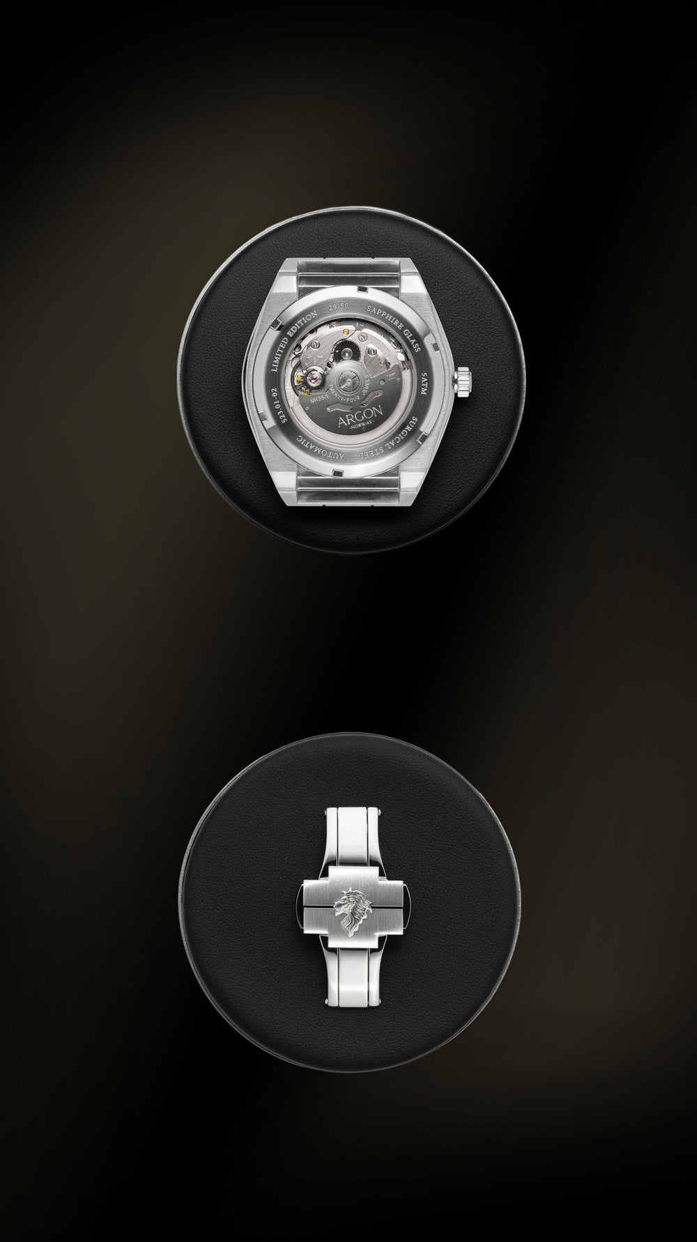 Vi utfordrer rammene for tradisjonell urmakerkunst. Med komplekse designelementer, en visuell tyngde som krever respekt og svært få eksemplarer produsert, er Argon en innovasjon du kan føle på håndleddet.